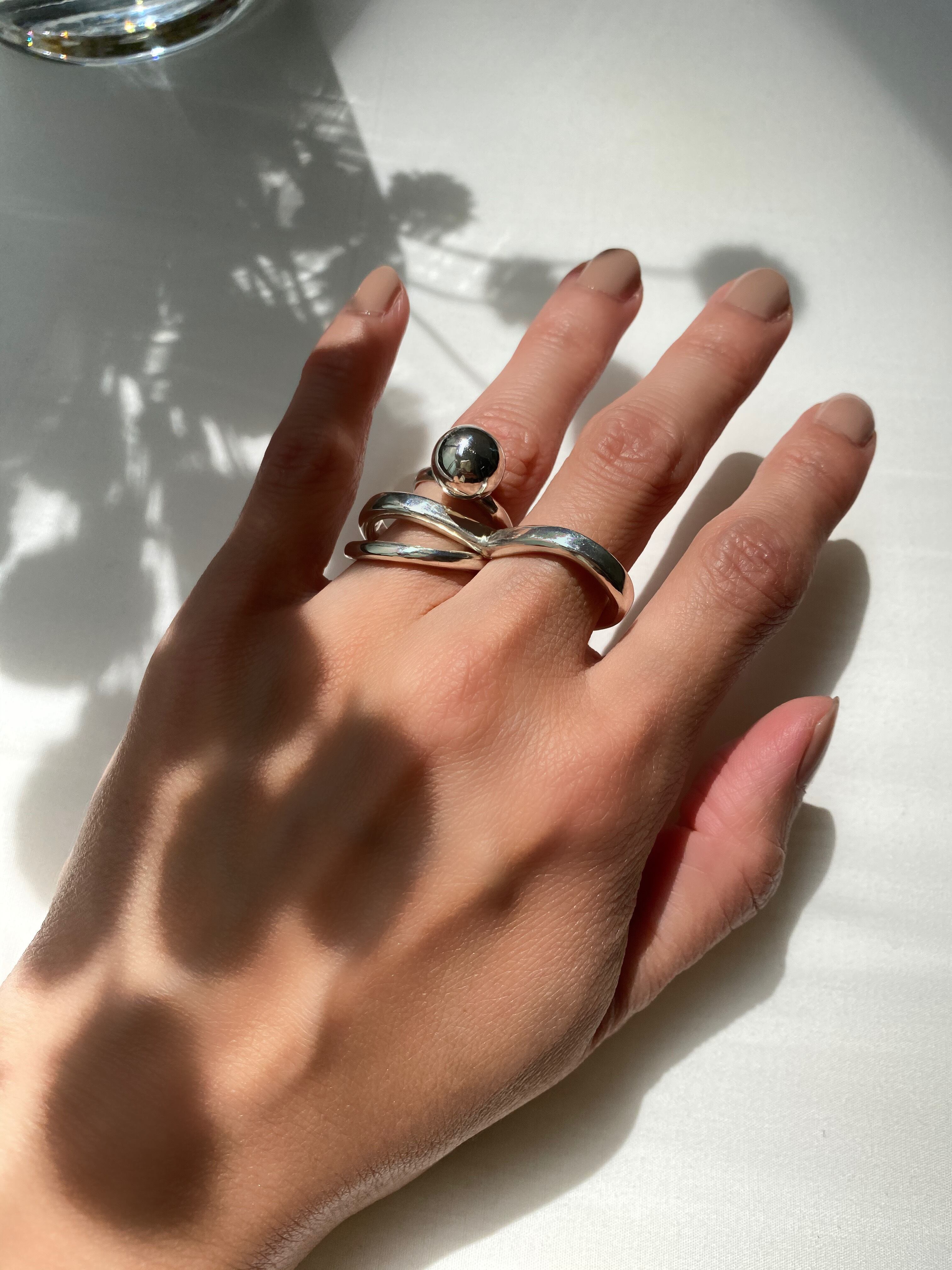 silver925の特性上、リング同士の重なりで傷つきやすくなりますが、その風合いもお楽しみください。