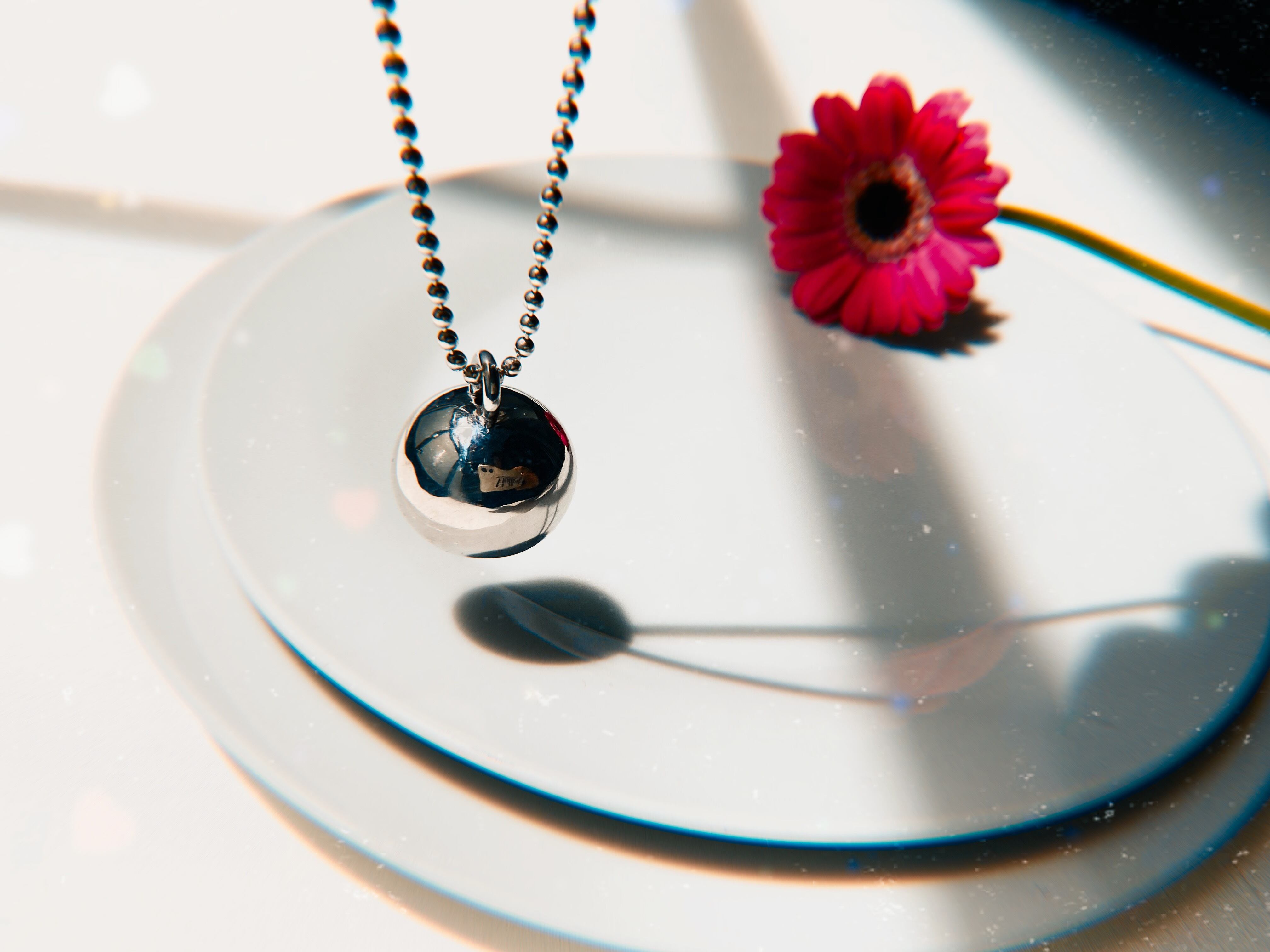 大きなボールをモチーフにした存在感のあるsilver necklace。中空なので軽く仕上げています。ball chainを使用。長めのチェーンなので二重に付ける事も可能です。 【サイズ】 free chain 84-86cm ball 23mm 【素材】 silver925 Rh *ご購入いただいてから1ヶ月から1ヶ月半でのお届けになります。完全受注生産になります。 *ひとつひとつハンドメイドで生産している為、一点一点の風合いやサイズが微妙に違います。